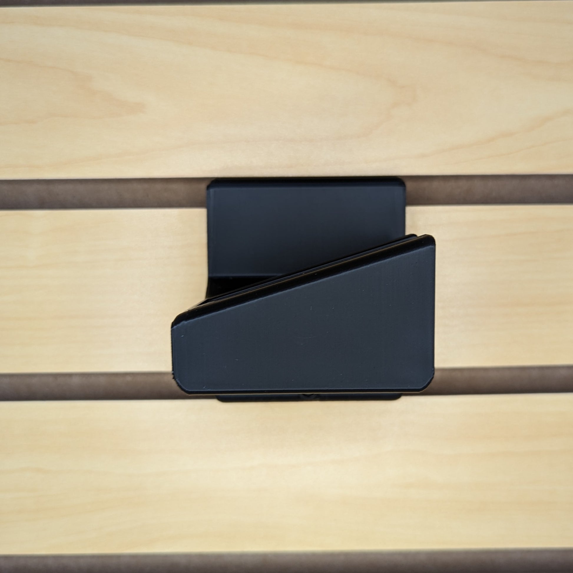 - Simple, Secure Mounting: Attaches to Slatwall via hook on the back of the mount and included printed T-nut and screw on bottom of mount. Insert printed nut into Slatwall slot underneath where you will place the hooked part of the mount. Rotate the nut 90 degrees to lock it into place. Then hook the mount into place and insert the screw through the bottom hole and into the printed nut. Tighten the screw to secure the mount to the slatwall.