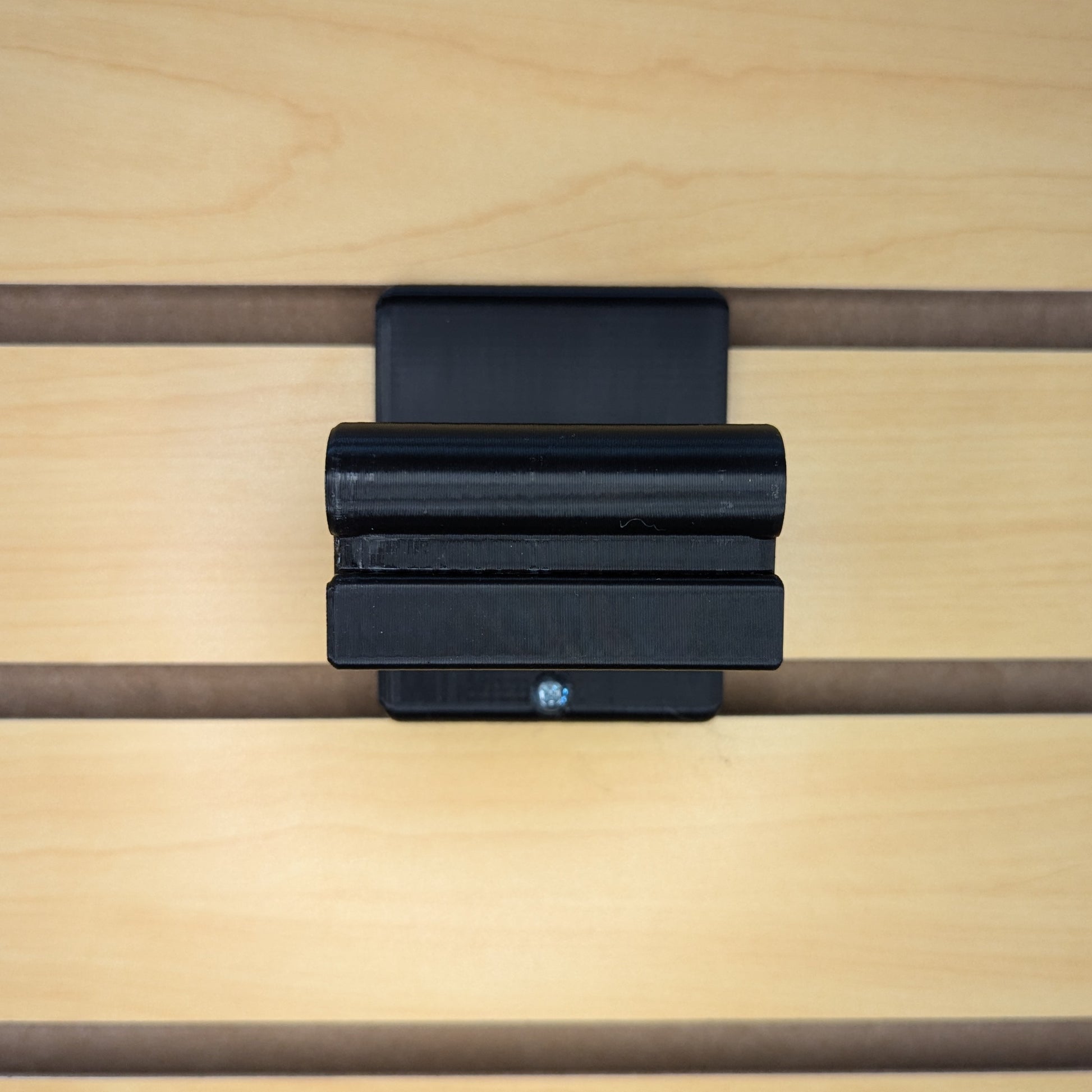 - Simple, Secure Mounting: Attaches to Slatwall via hook on the back of the mount and included printed T-nut and screw on bottom of mount. Insert printed nut into Slatwall slot underneath where you will place the hooked part of the mount. Rotate the nut 90 degrees to lock it into place. Then hook the mount into place and insert the screw through the bottom hole and into the printed nut. Tighten the screw to secure the mount to the slatwall.