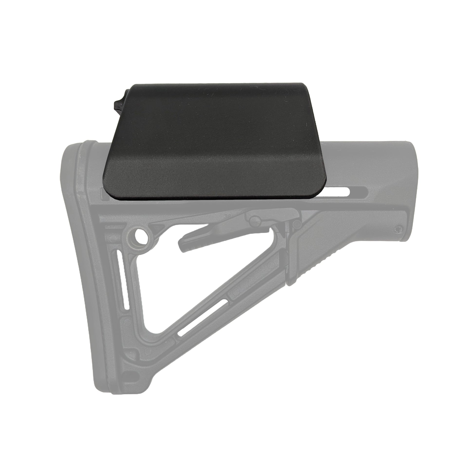 - Secure Fit: Locking tabs on the side click into the slots on the side of a CTR Carbine stock. This dual interface system ensures a tight fit without forward-to-rear movement. It is recommended to use a flashlight to ensure the tabs are lined up during the install process. To remove, tap the riser towards the rear and then pull it up and off. The stock will need to be extended 2 or more positions for the charging handle to clear the riser.