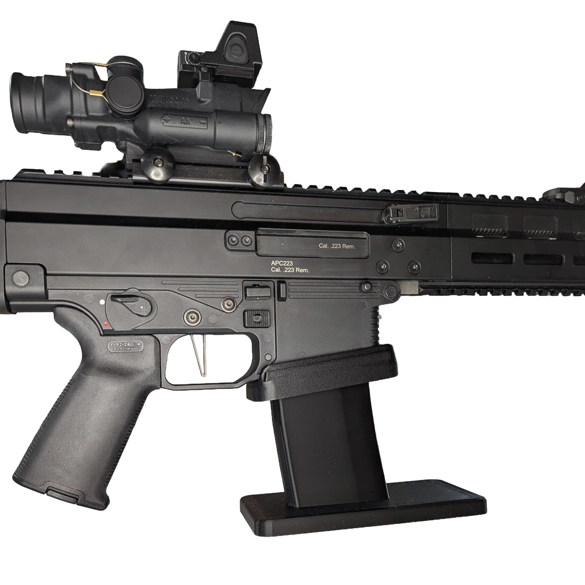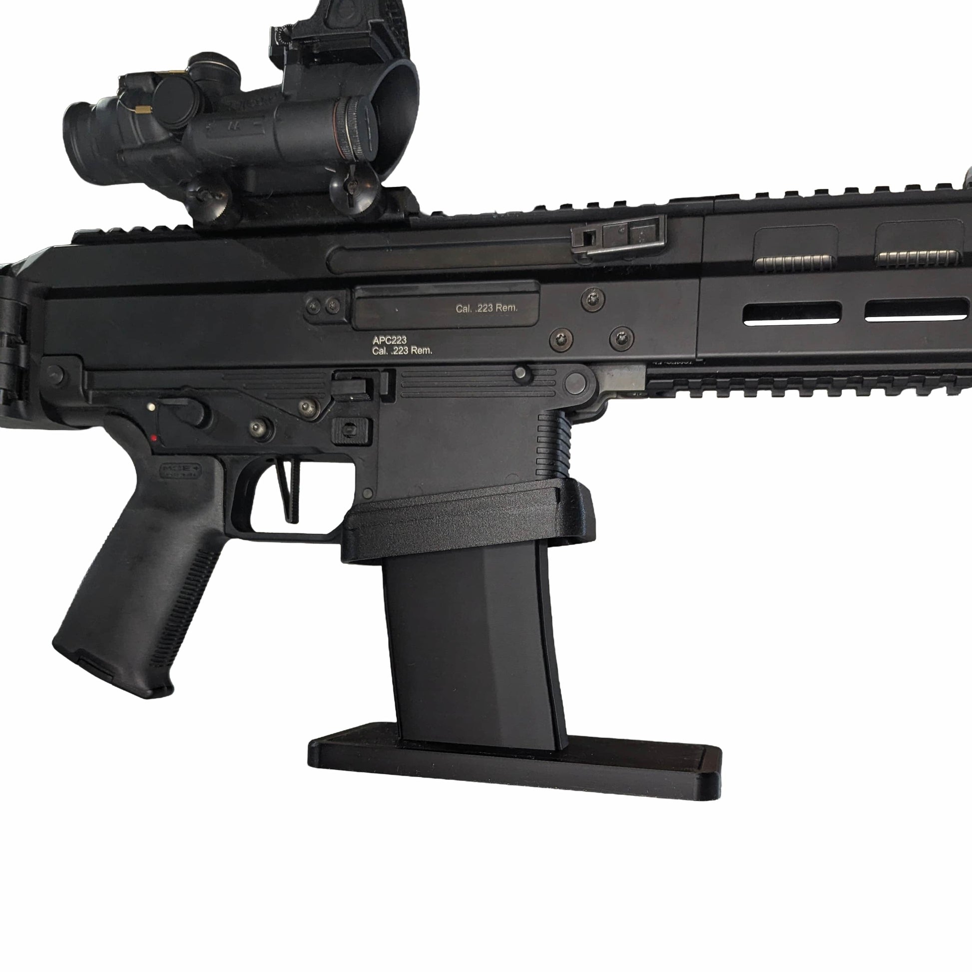 - Perfect Fit: Works with a B&T APC / SPC 223 / 556 / 300. This mount does not latch onto the mag catch, so the firearm can be lifted on and off without activating it, while still being held secure