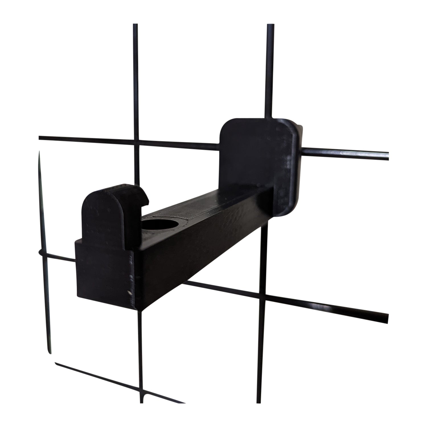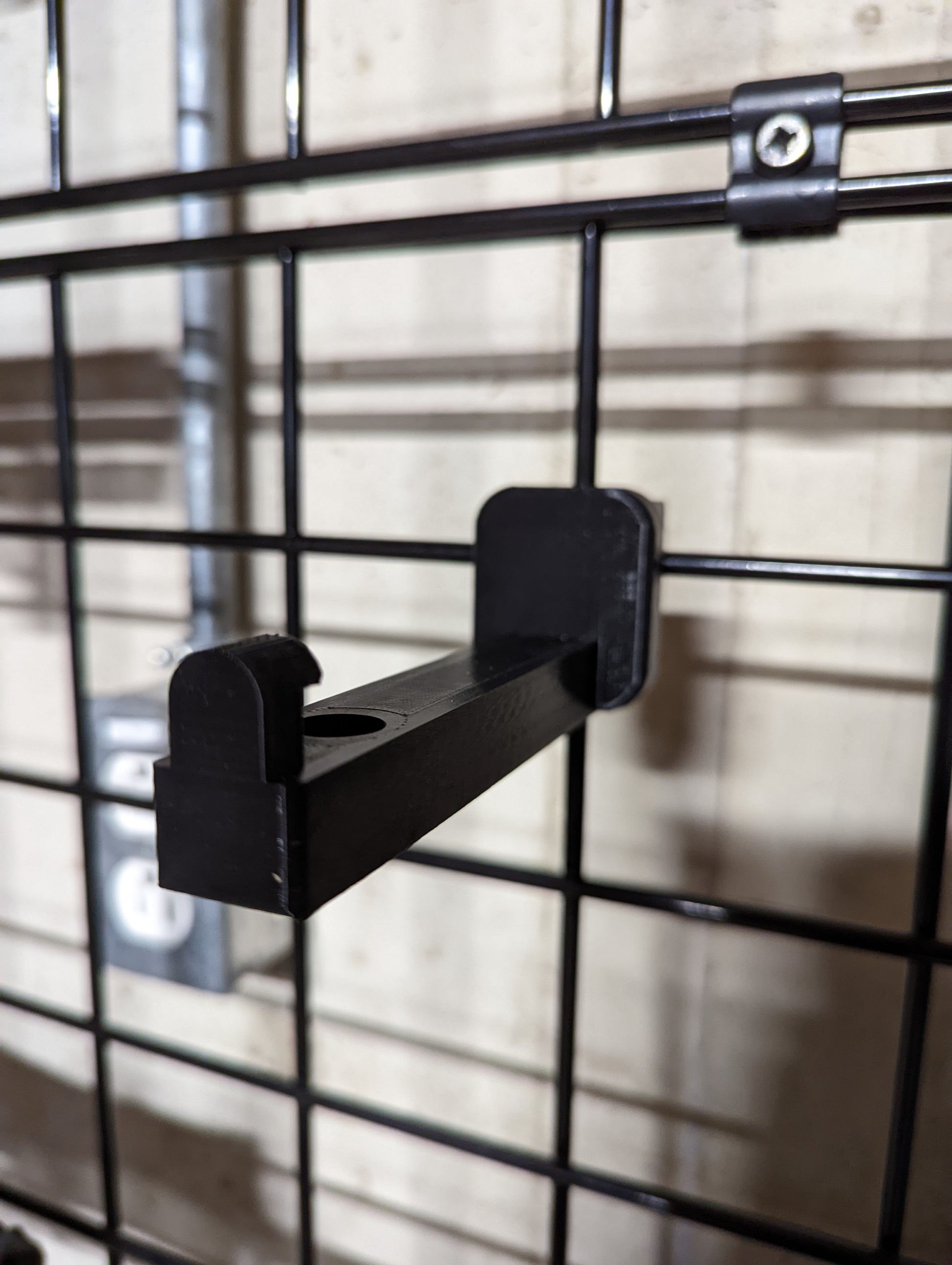 - Simple, Secure Mounting: Mount slides onto the gridwall where the horizontal and vertical wires overlap. If needed, you can use a rubber mallet to lightly tap the mount into place.