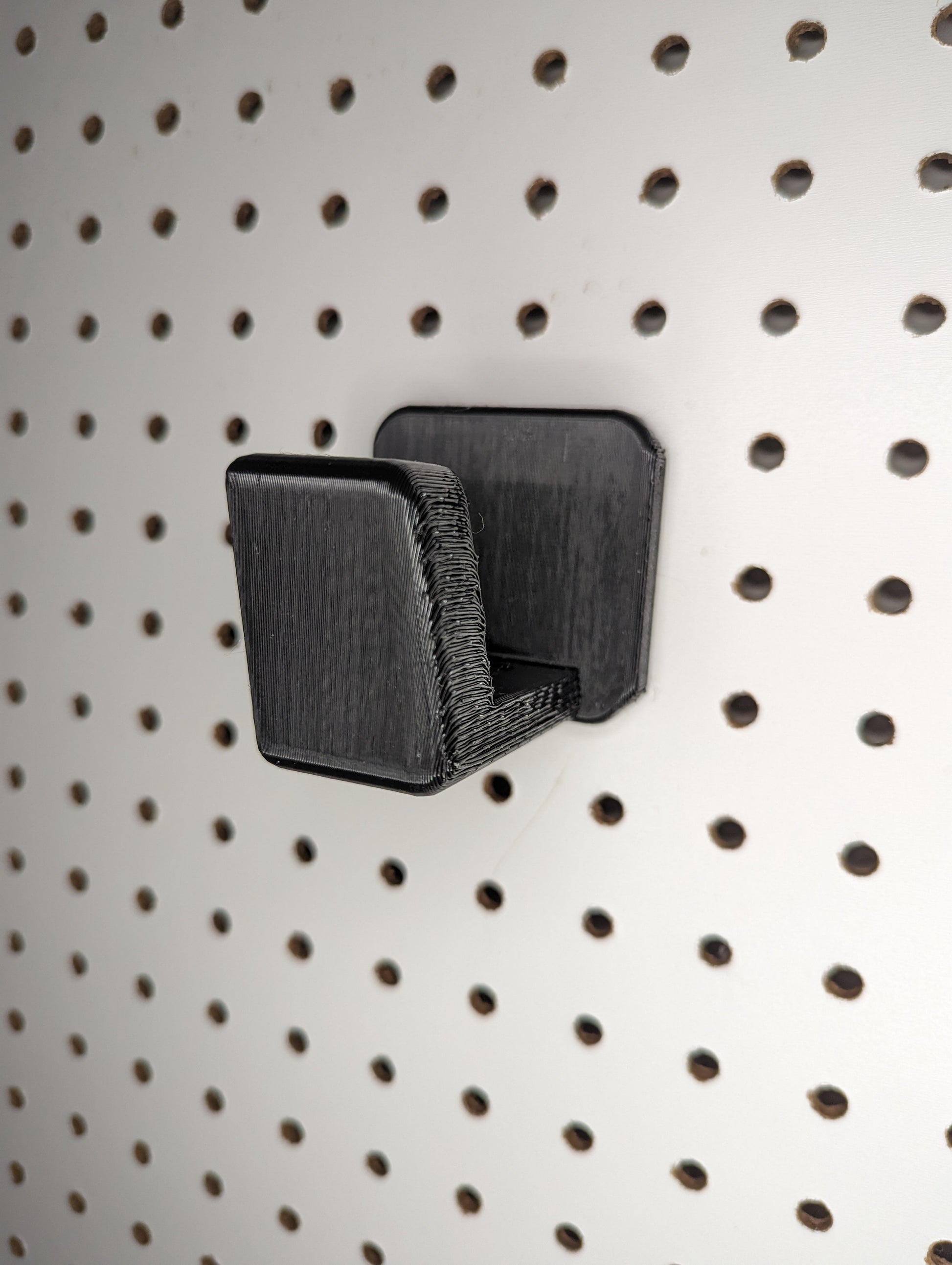 The non-metal and metal pegboard designs are based around standard pegboard with 1/4" holes spaced 1" apart. NOTE: Wall Control in particular is troublesome to get the mounts that use metal hooks lined up properly. It will require some finagling, and may require filing or entirely snipping off the printed pegs/nubs on the back of the mount. This will not affect the structural integrity of the mount. The mount will be more susceptible to falling off when the rifle is removed and upward pressure is applied to the mount. This is a shortcoming of standard 1/4" pegboard.