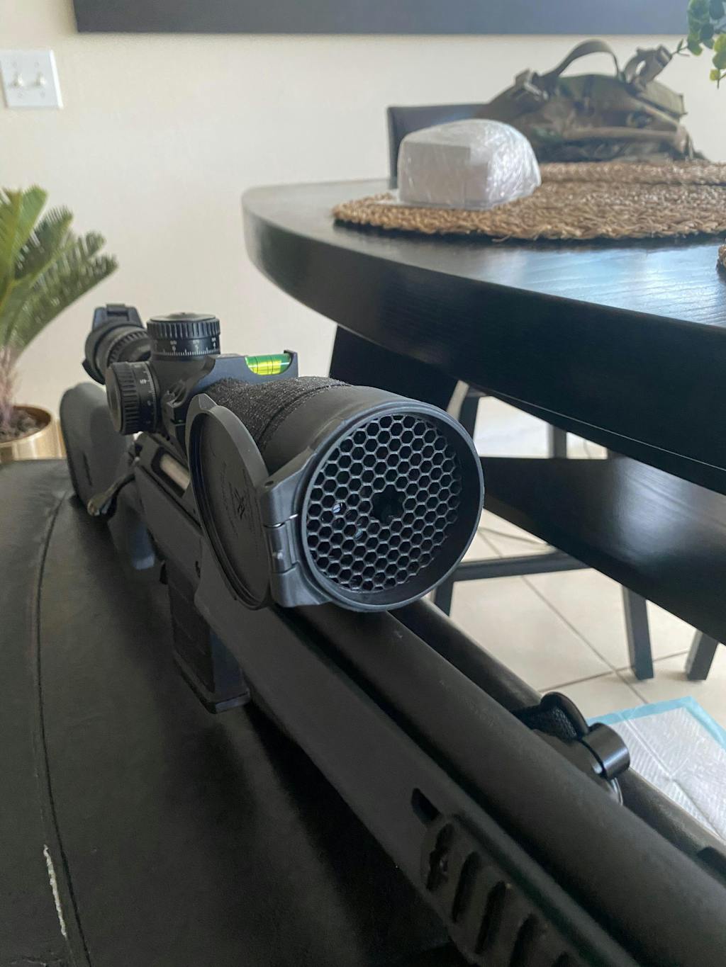 - Reduces Glare: The killflash reduces glare / reflections from the glass on the objective end of scopes. One side of the killflash will have some shine due to the print bed, ensure this side faces inward and the matte side faces forward outside the scope. It can also be minimized by sanding or spray painting it.