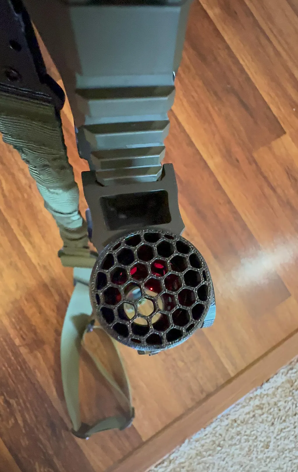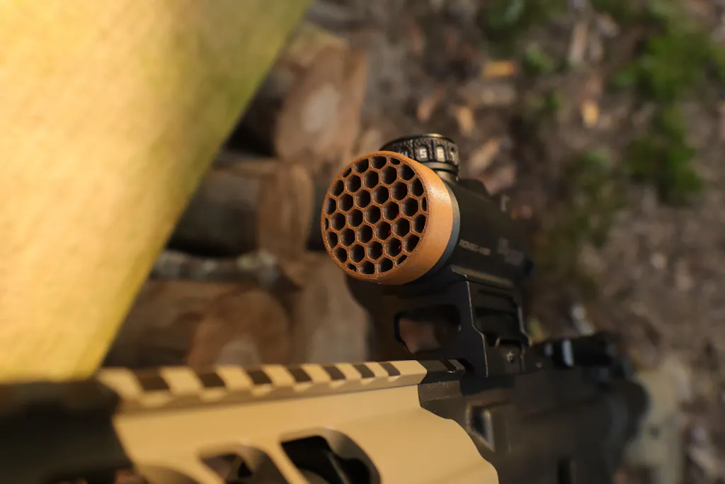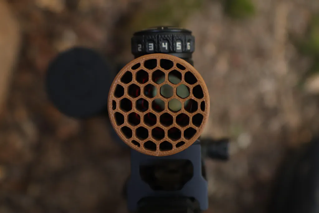 - Reduces Glare: The killflash reduces glare / reflections from the glass on the objective end of scopes. Due to needing to print with the front of the killflash on the print bed, there may be some shine to it which can be minimized by sanding or spray painting it.