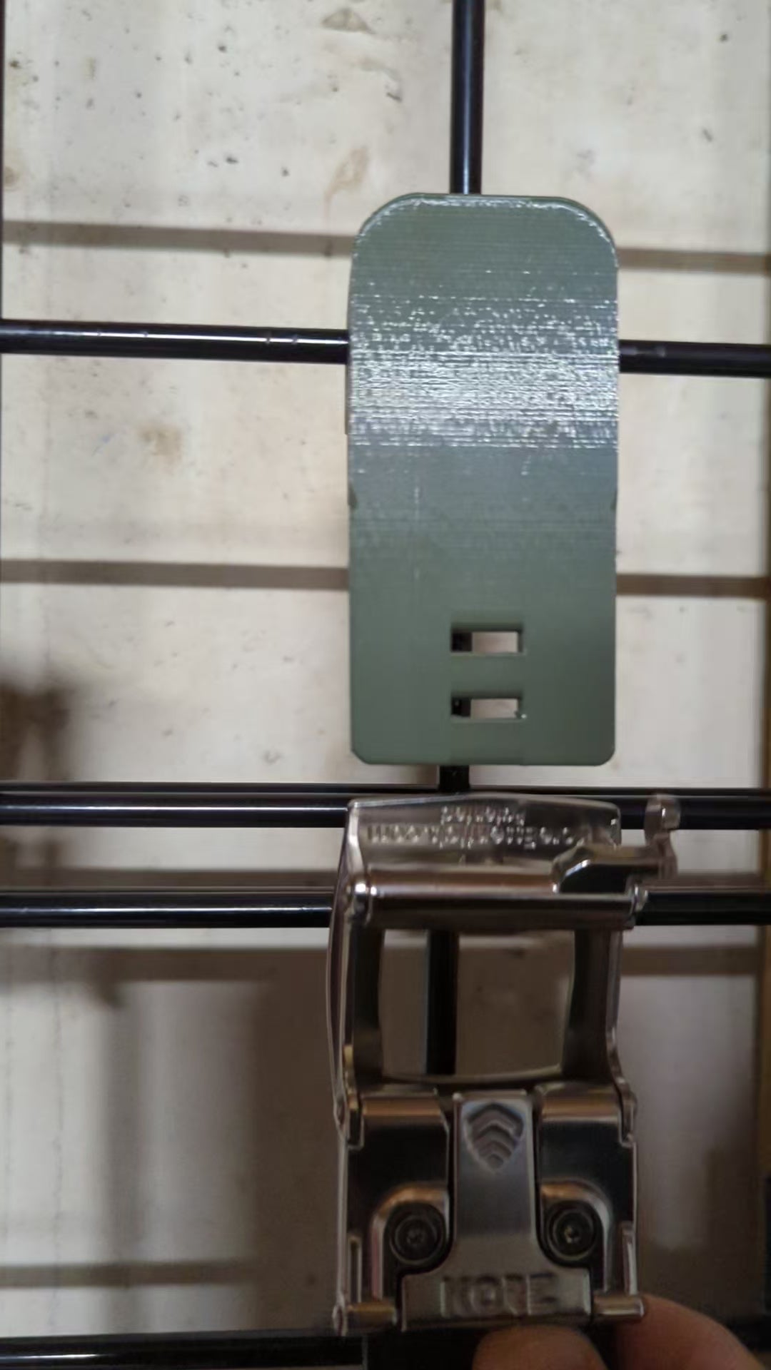 - Simple, Secure Mounting: Mount slides onto the gridwall where the horizontal and vertical wires overlap. If needed, you can use a rubber mallet to lightly tap the mount into place.