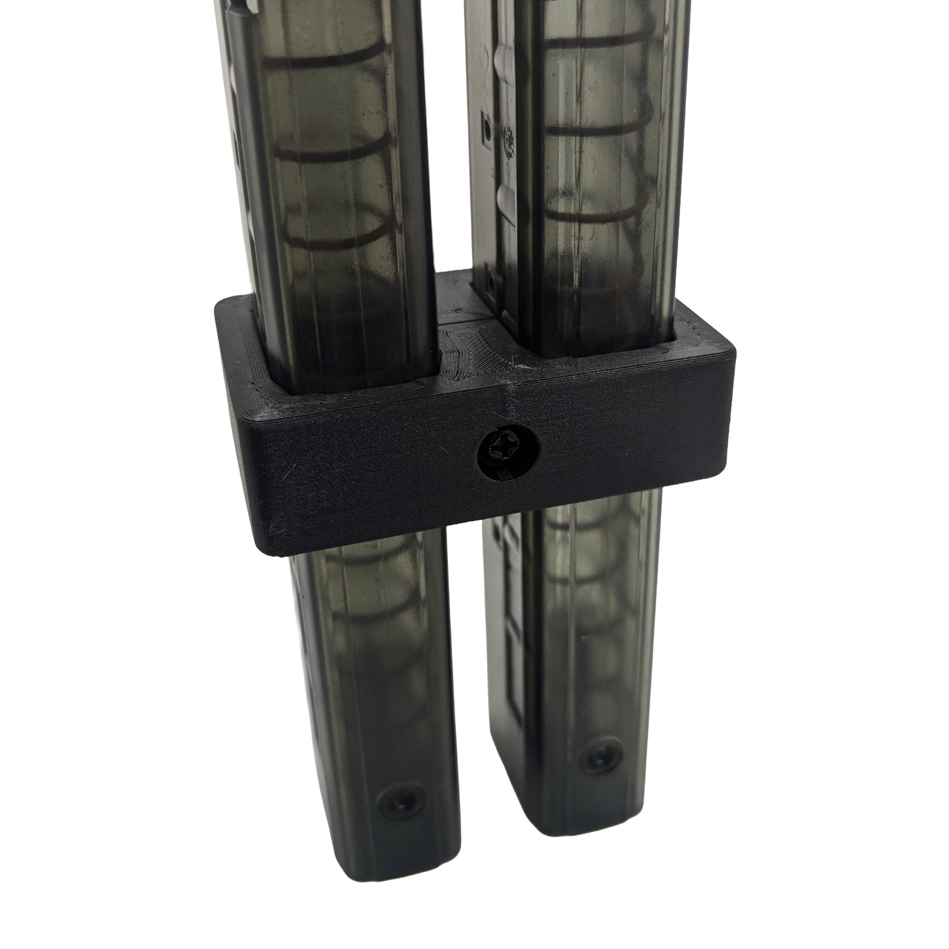 - Simple Setup: Comes as one printed piece, a bolt, and a nut. The bolts and nuts only fit in one way. Slide the top of the mags through the coupler, then hold the nut in place with your finger while you tighten the bolt.