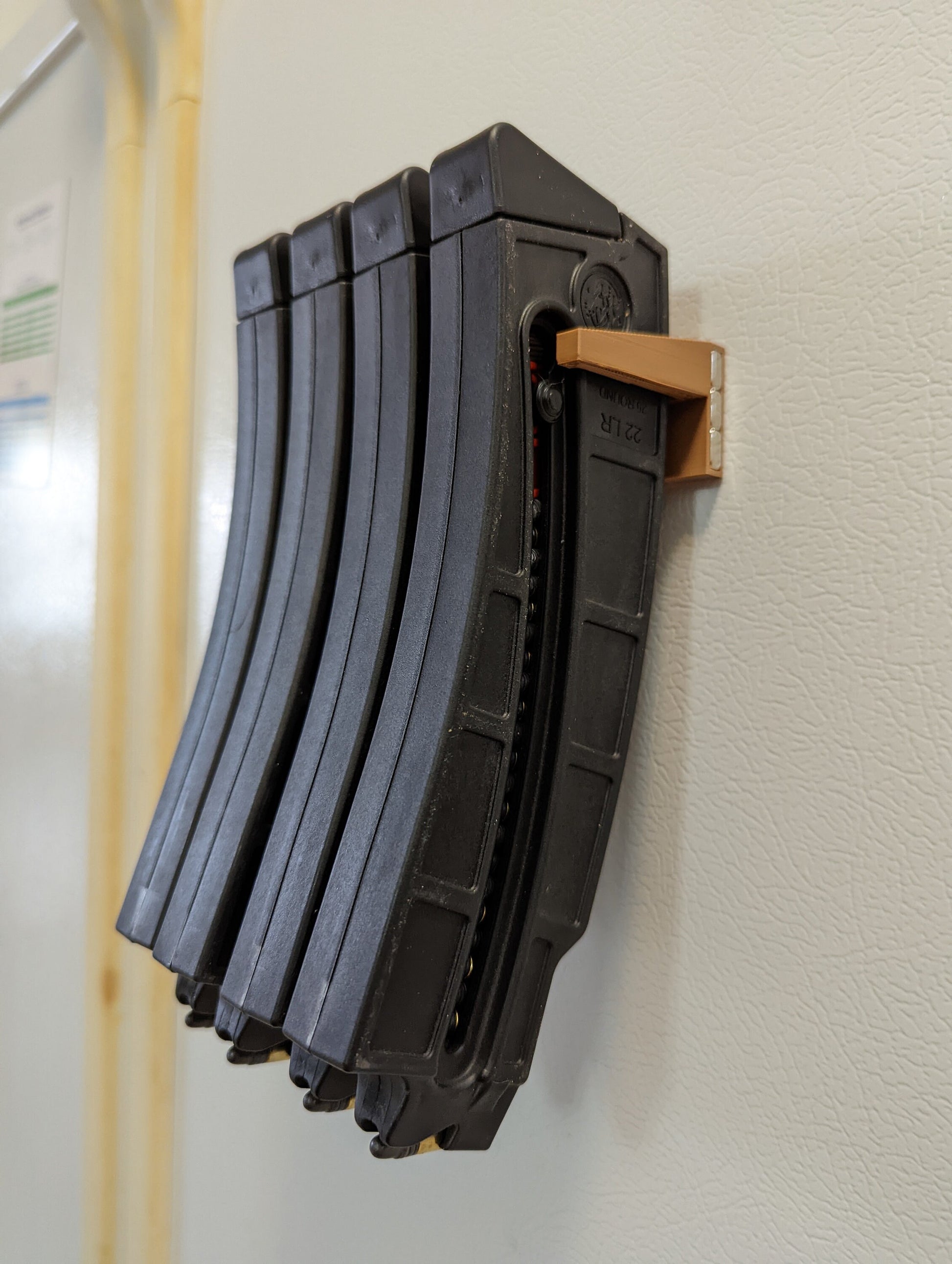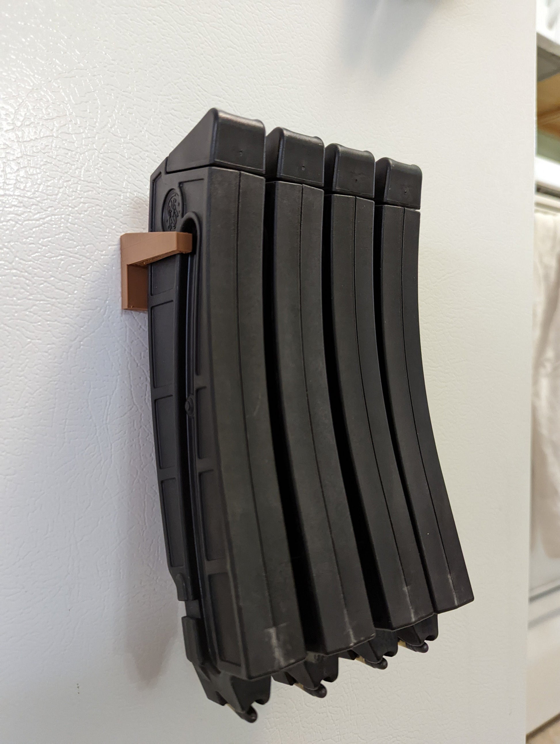 The magnetic mount is strong and holds well on the sides of a metal cabinet. The 3d printed material seems to be very durable for holding magazines. The fit to the mags is perfect and it holds them very well. This is a great system to get you magazines out of a box and organized where you can visually see them.