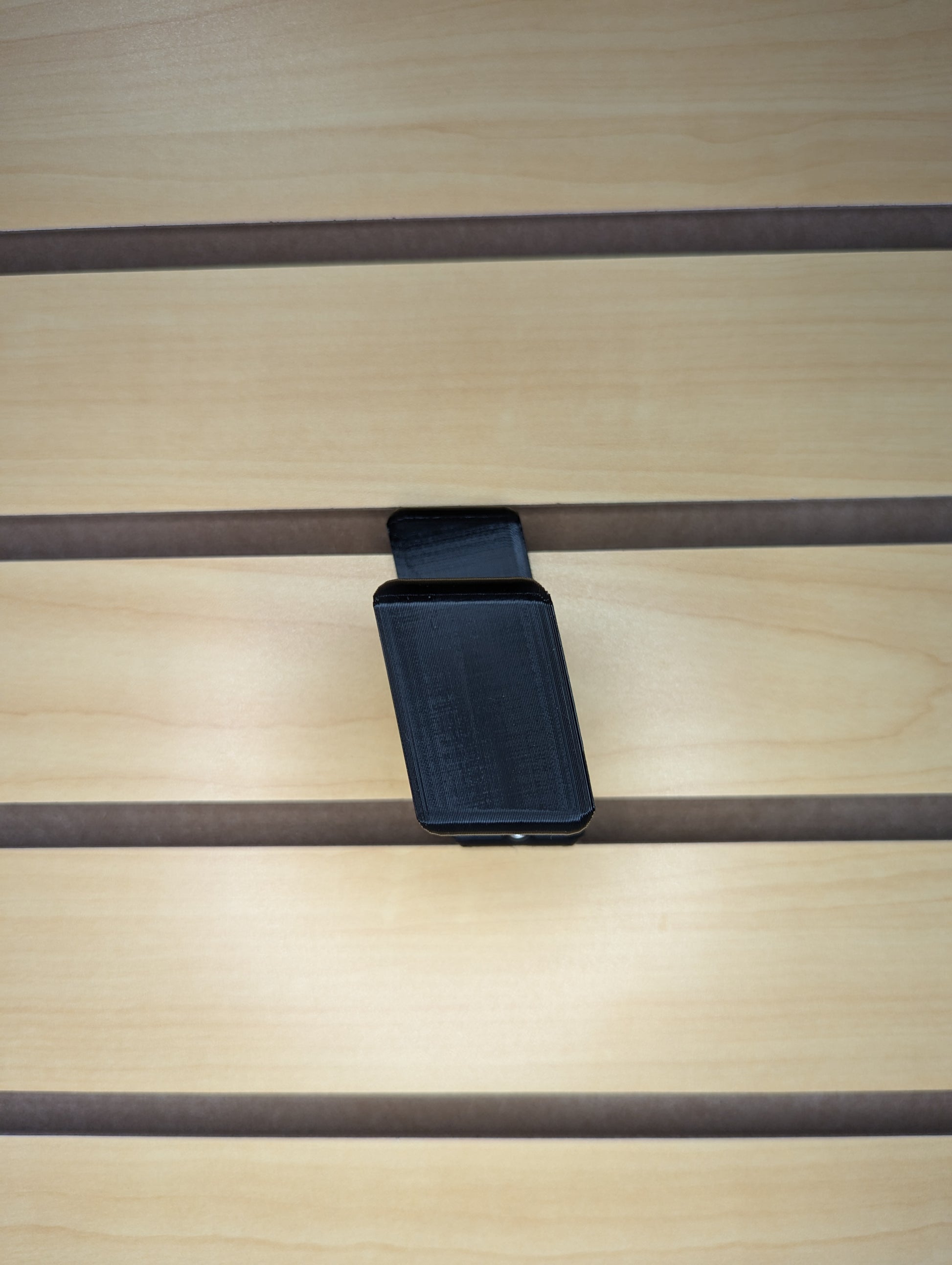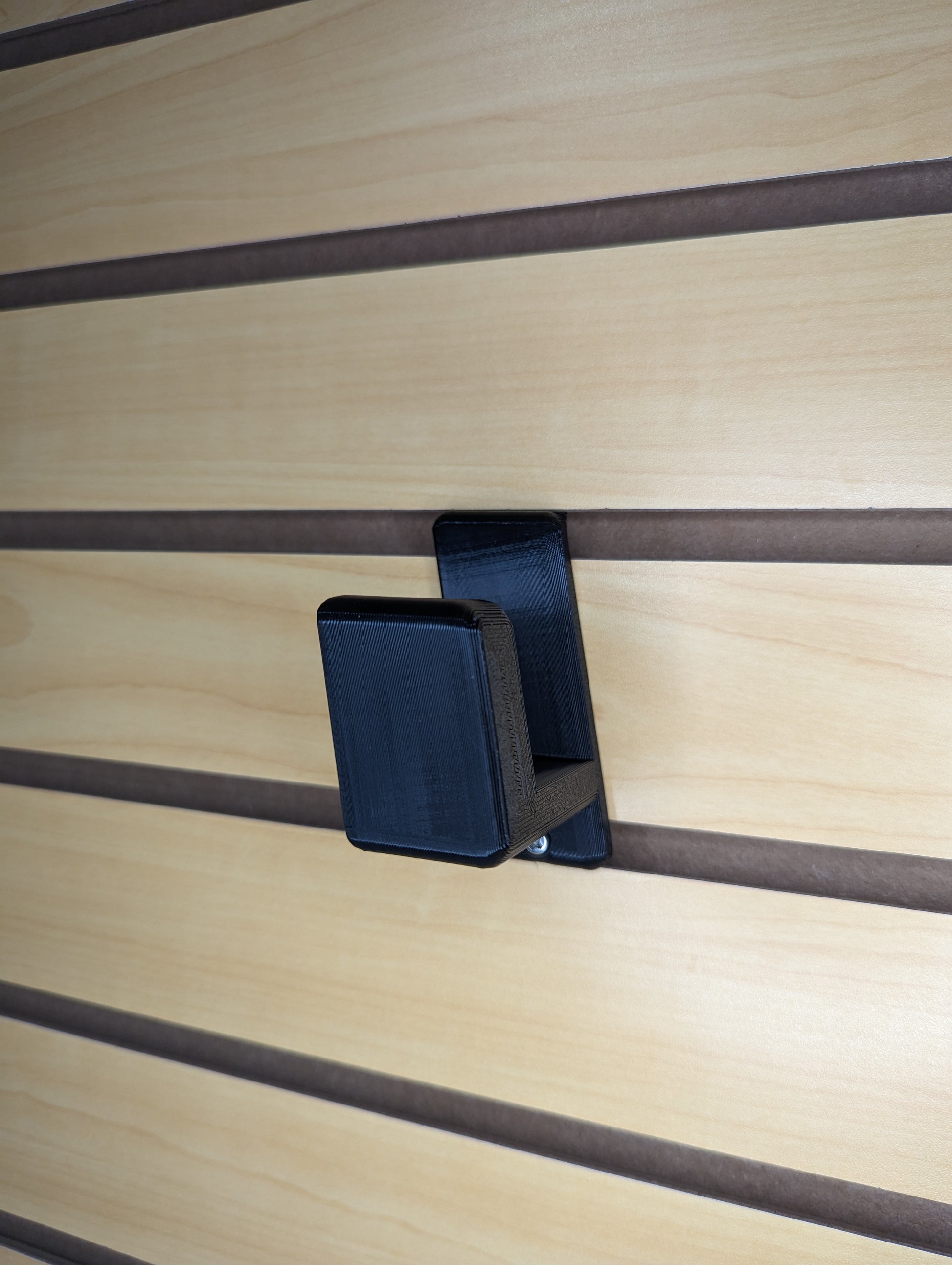 - Simple, Secure Mounting: Attaches to Slatwall via hook on the back of the mount and included printed T-nut and screw on bottom of mount. Insert printed nut into Slatwall slot underneath where you will place the hooked part of the mount. Rotate the nut 90 degrees to lock it into place. Then hook the mount into place and insert the screw through the bottom hole and into the printed nut. Tighten the screw to secure the mount to the slatwall.