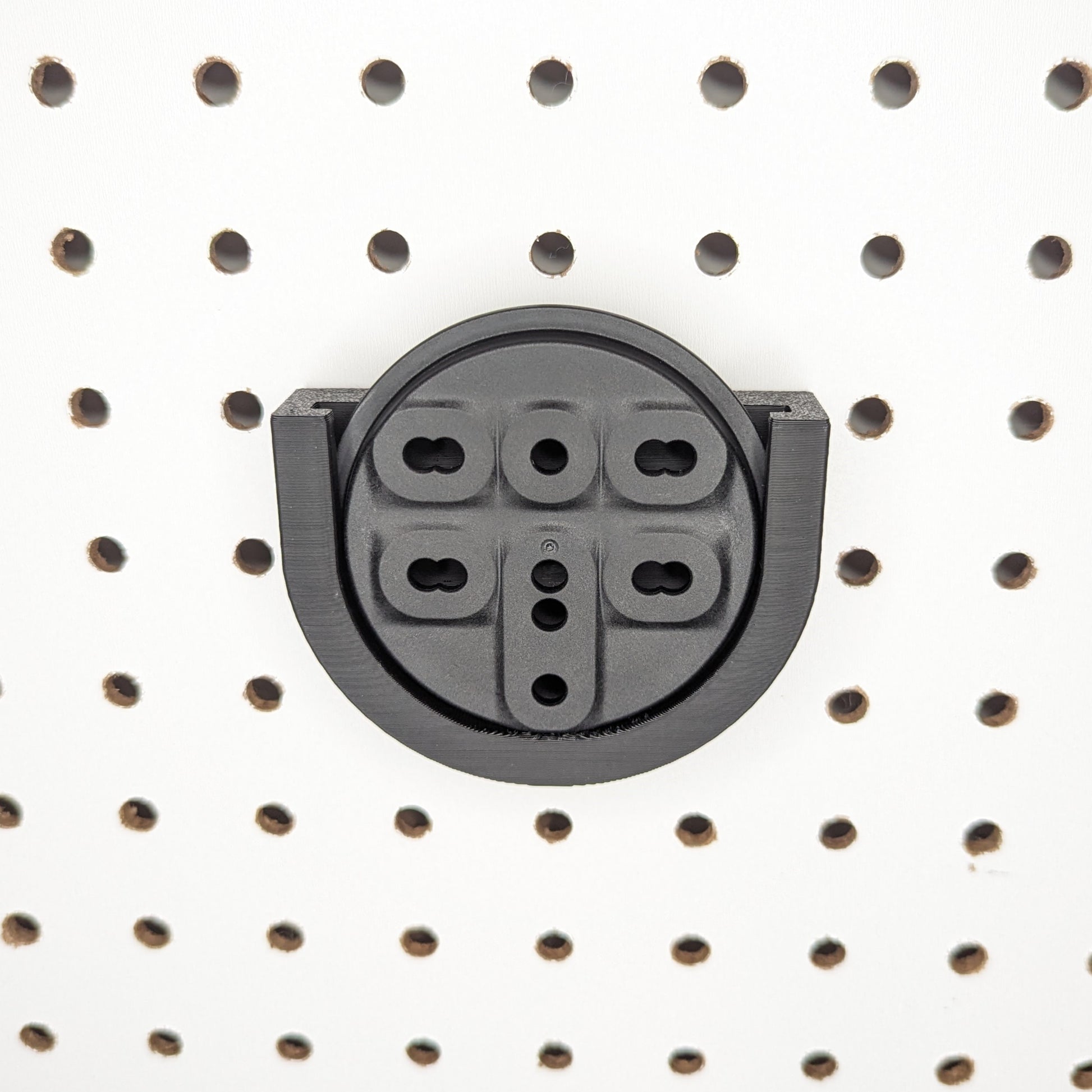 - Simple, Secure Mounting: Attaches to pegboard via hooks on the back of the mount. Holds holster with or without firearm.