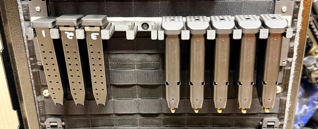 - Simple, Secure Mounting: Mount uses included rare earth neodymium magnets to hold loaded or unloaded magazines to magnetic surfaces, such as safes. The design has been updated as of August 2024 to use magnets that directly attach to the mounting surface.