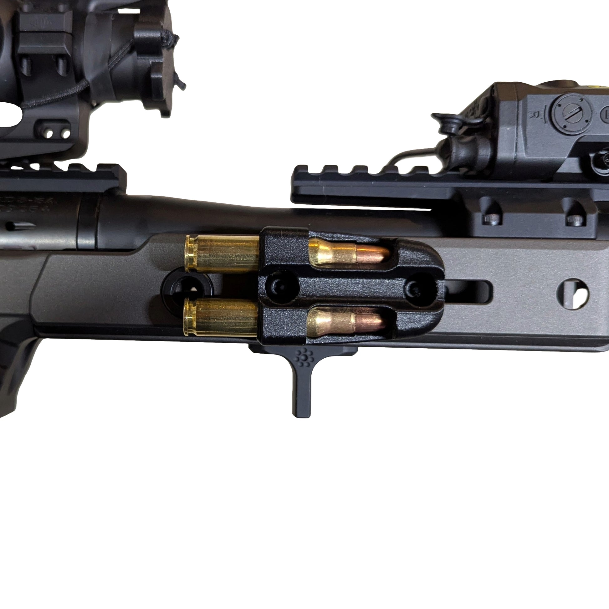 - Keep Spare Ammo In Quiver: This quiver keeps spare ammo in an easy to reach location. Mostly used in bolt actions, but would also work in lever actions, pump action, etc.