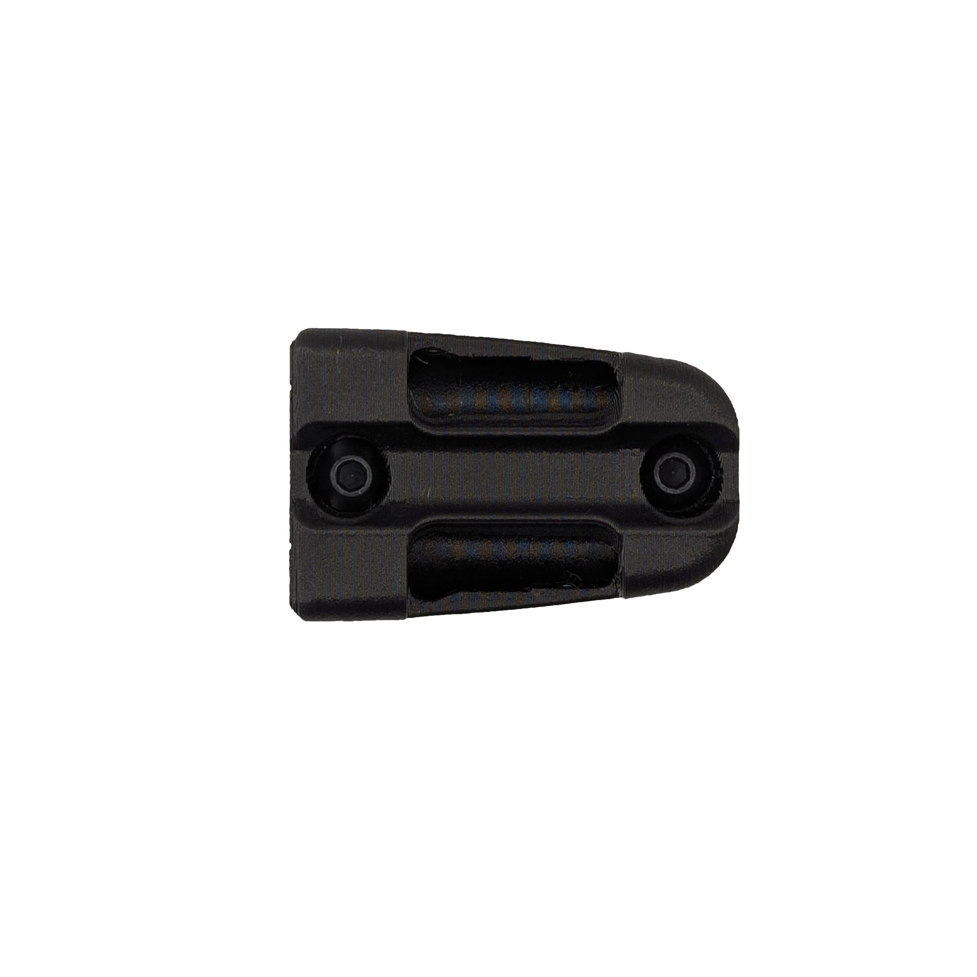 - MLOK Compatible: Comes with MLOK hardware for mounting to a handguard. This will span across a full slot and then go into the next slot. For example, if you're mounting this to the rear of the slot, one nut will tighten at the rear of that slot, and the next will tighten and the rear of the adjacent slot.