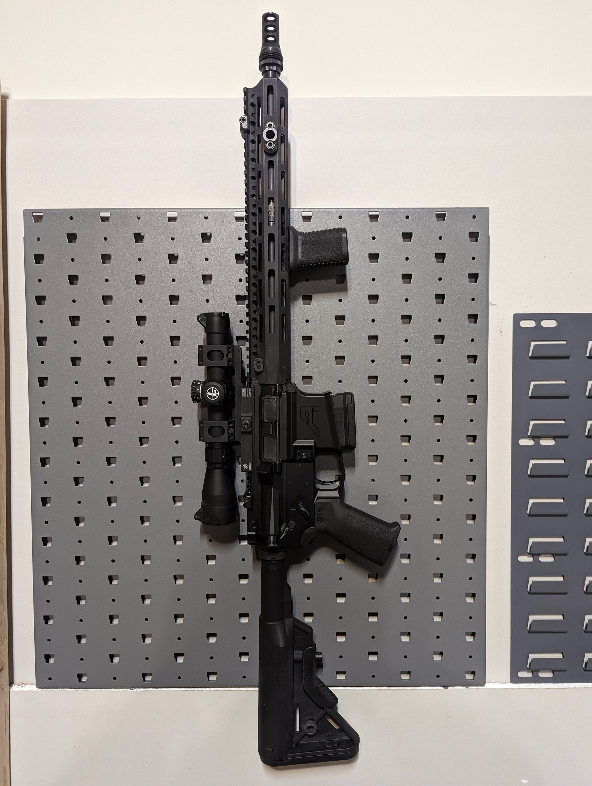 Perfect for organizing your gun room, or making your AR easier to access! This is specifically designed for mounting as an easy-to-access self-defense weapon that can be mounted out of the reach of children.